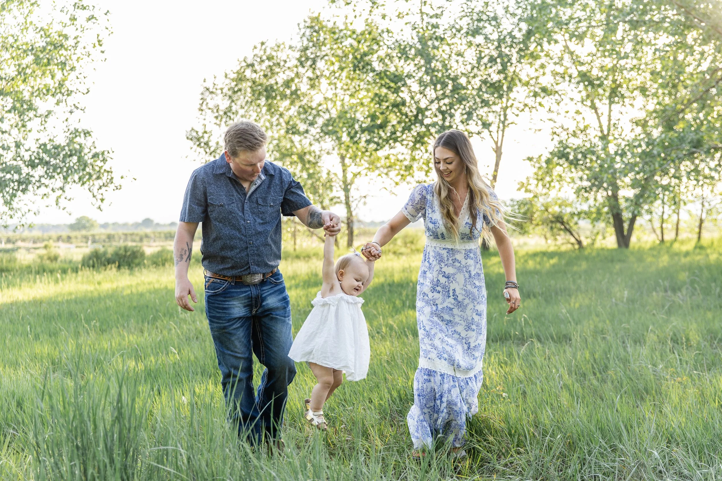 This is one of my favorite spots for family photos near Timnath because it has wide open fields, soft grasses, and beautiful evening light. The landscape feels peaceful and simple, which keeps the attention on the family instead of the scenery.