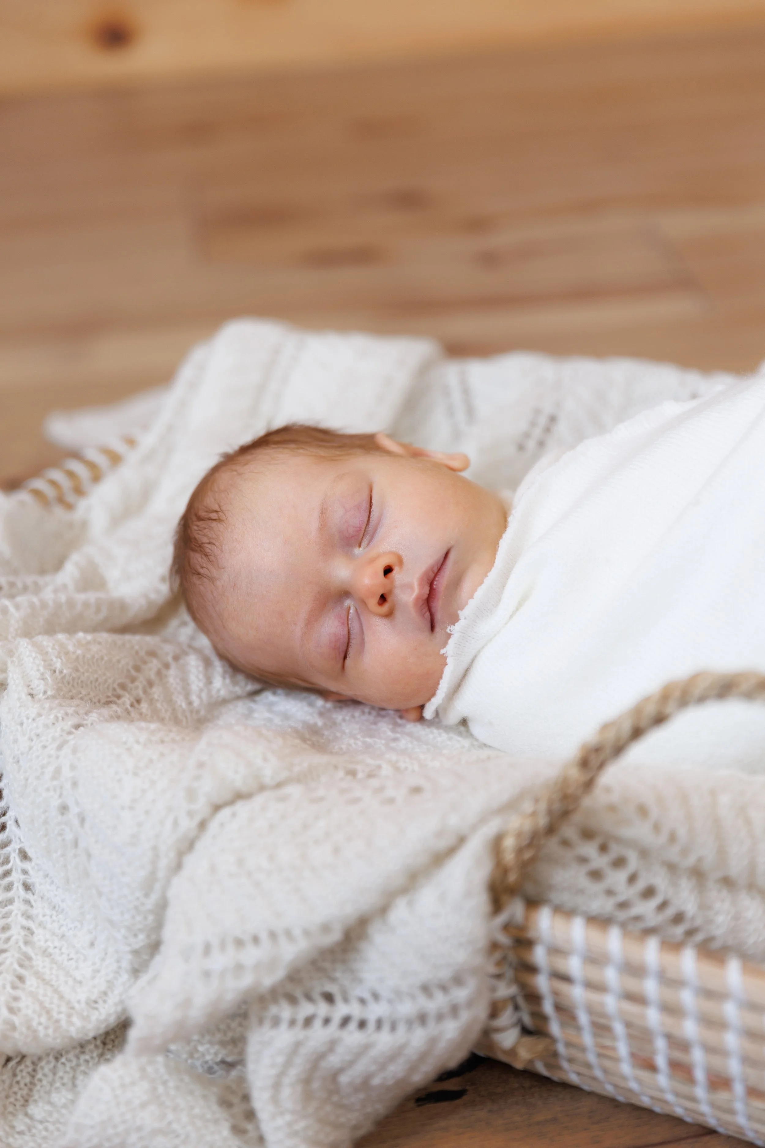 As a natural and connection-focused Loveland newborn photographer, I always tell families that sessions don’t have to look one specific way to be successful. Your baby doesn’t need to be deeply asleep or posed in a certain position. Some of the most beautiful photos come from simply leaning into what your baby needs in the moment—and in this case, that meant lots of cozy, wrapped-up cuddles.